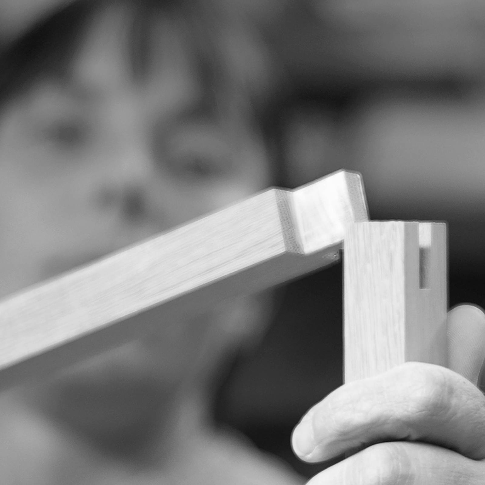 På snickeriet monteras alla skåpstommar med traditionellt spont och not. Det ger den största limytan och den tätaste och starkaste konstruktionen. Ramarna med sinkade fogar fogas ihop och slipas för hand på äkta snickarmaner. Innan vi monterar ramen på stommen med spont och not, gör vi den vackra gjutningen som skapar mjuka skuggeffekter i fogarna mellan stommarna. Här behövs inga träpluggar. Det ger produkten råstyrka och hållbar skönhet.