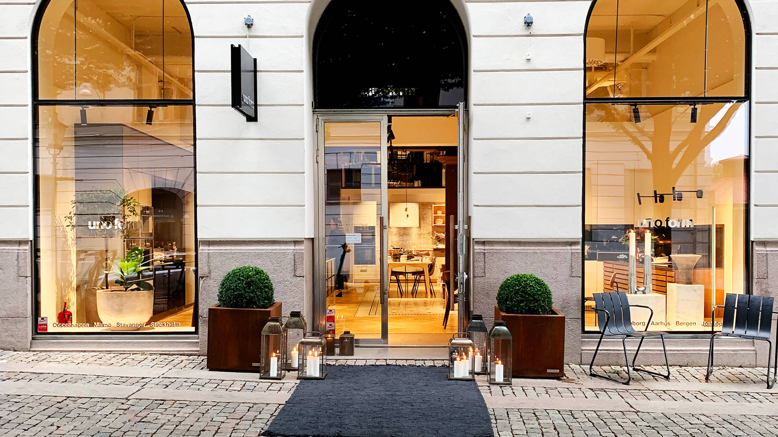 Utöver uno form hittar man därför design från utvalda danska och svenska designmärken som Gubi, Anour, Massimo CPH, Mater Design, Menuspace, Belid, &Tradition och Skultuna.